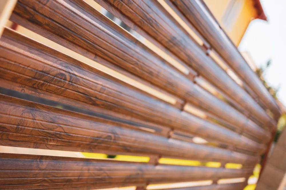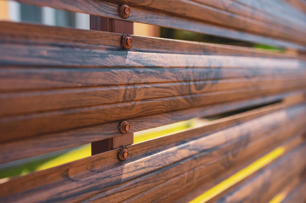 A két oldalon előfestett, ívesen formált acélból készült „lécezet” természetes megjelenést biztosít a kerítés mindkét oldalán, a színpaletta pedig széles választékot kínál.